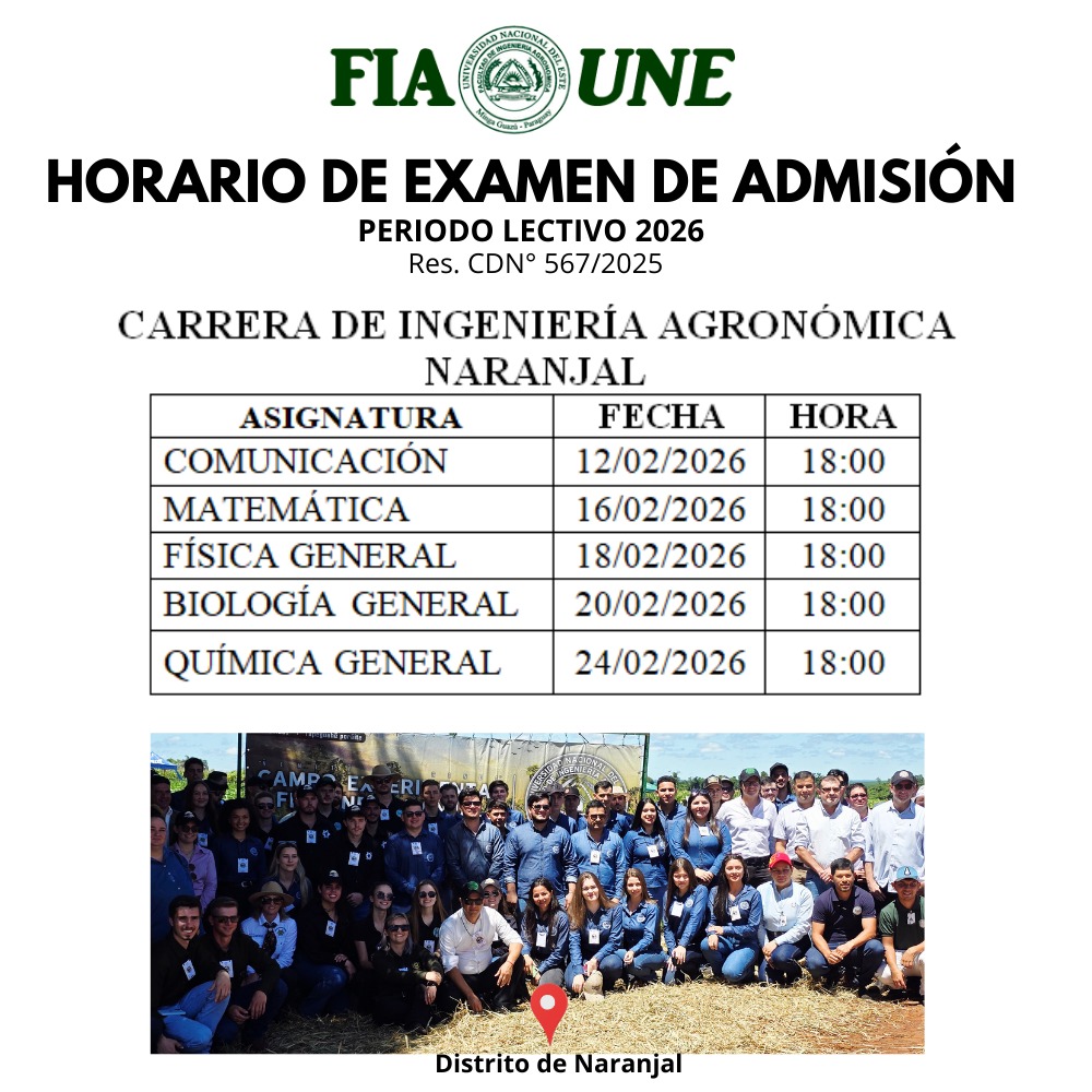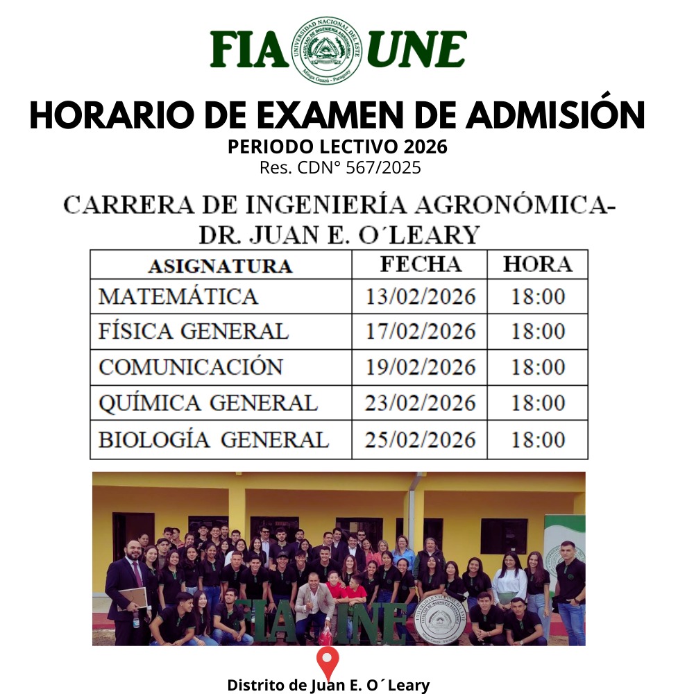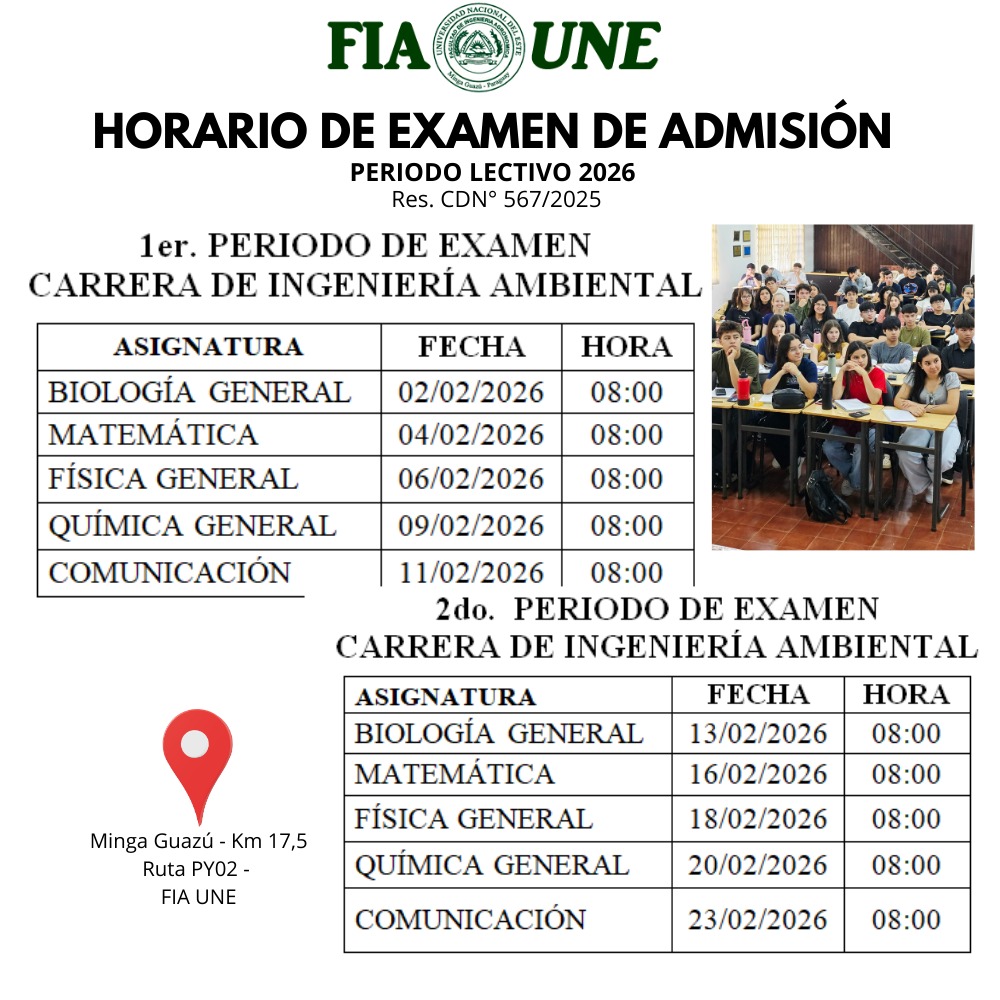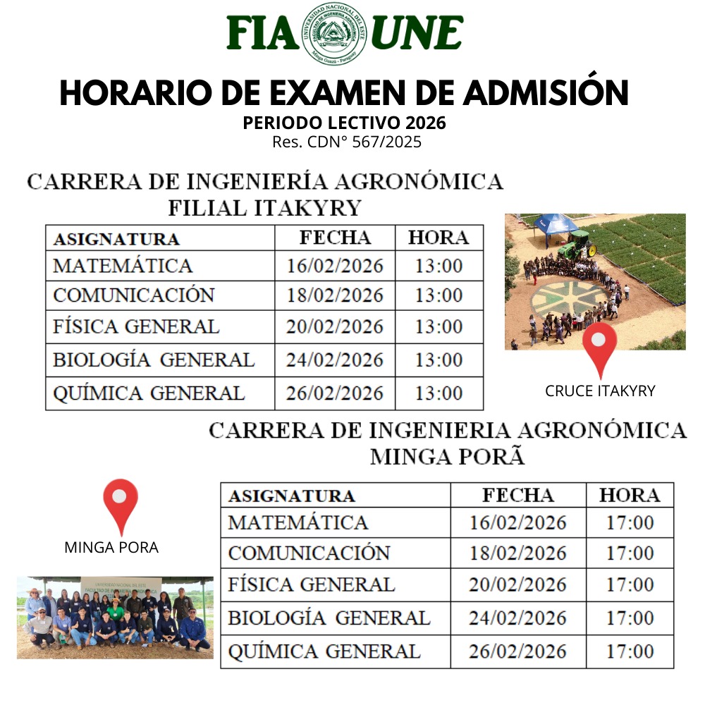 Lugar: Km 17,5 Ruta PY02. Horario de Exámenes: 08:00 hs.